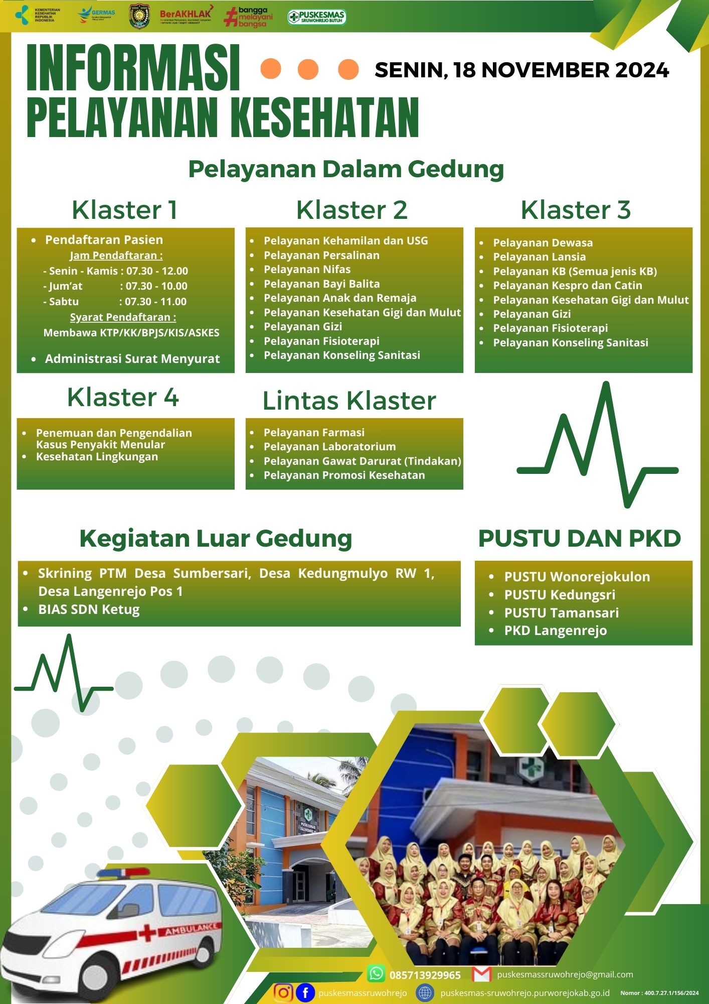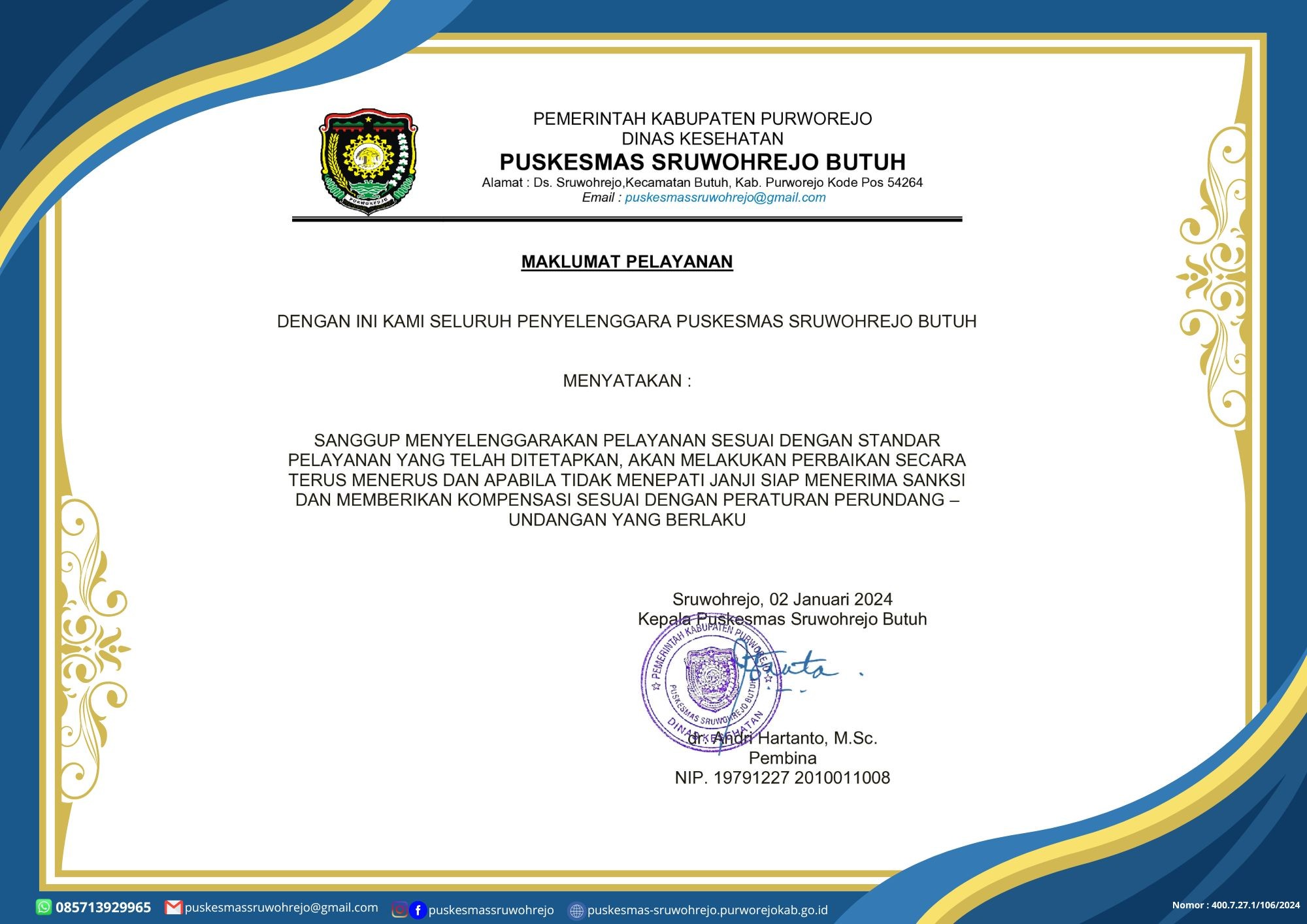 • MAKLUMAT PELAYANAN PUSKESMAS SRUWOHREJO BUTUH0
