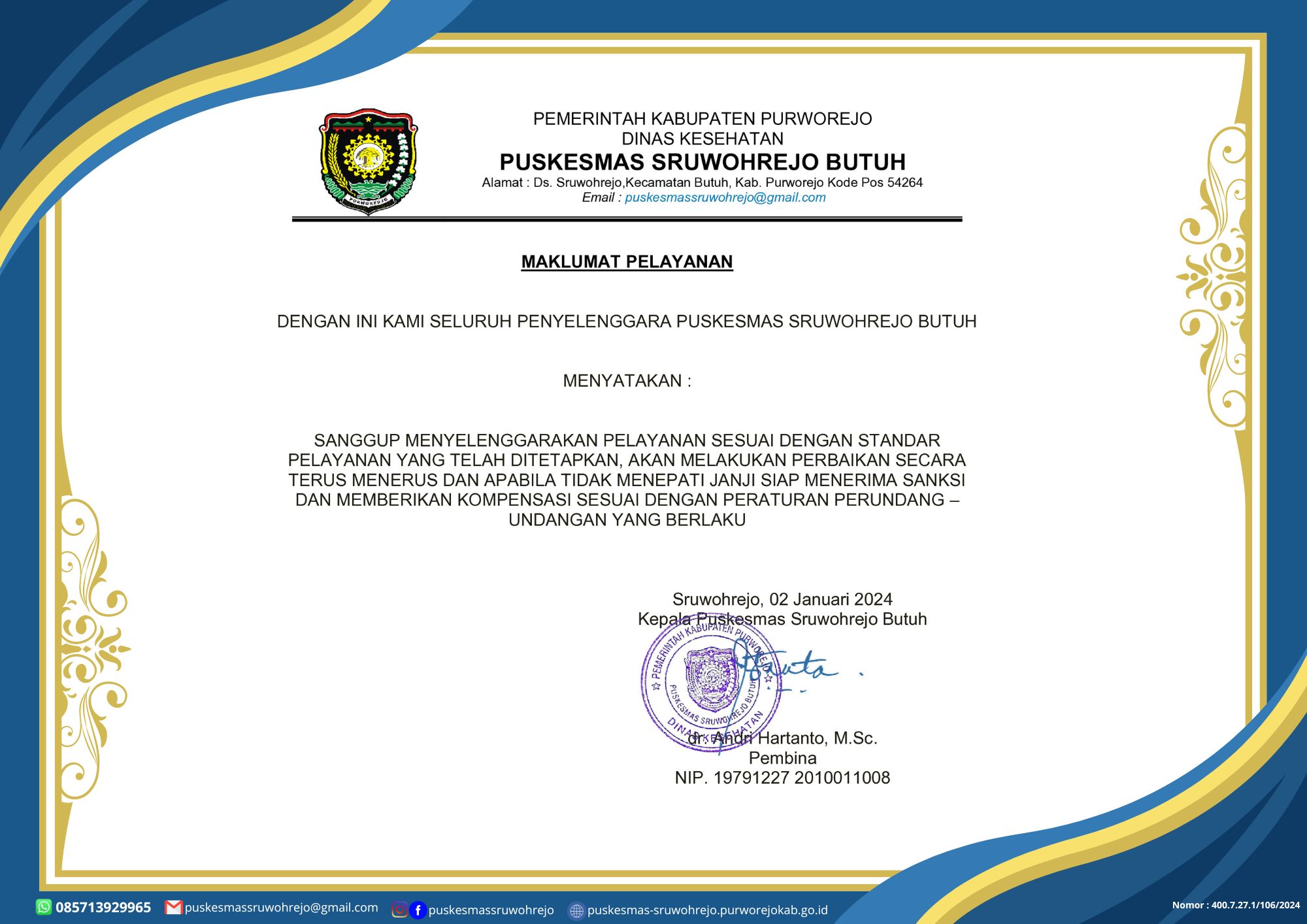 - MAKLUMAT PELAYANAN PUSKESMAS SRUWOHREJO BUTUH